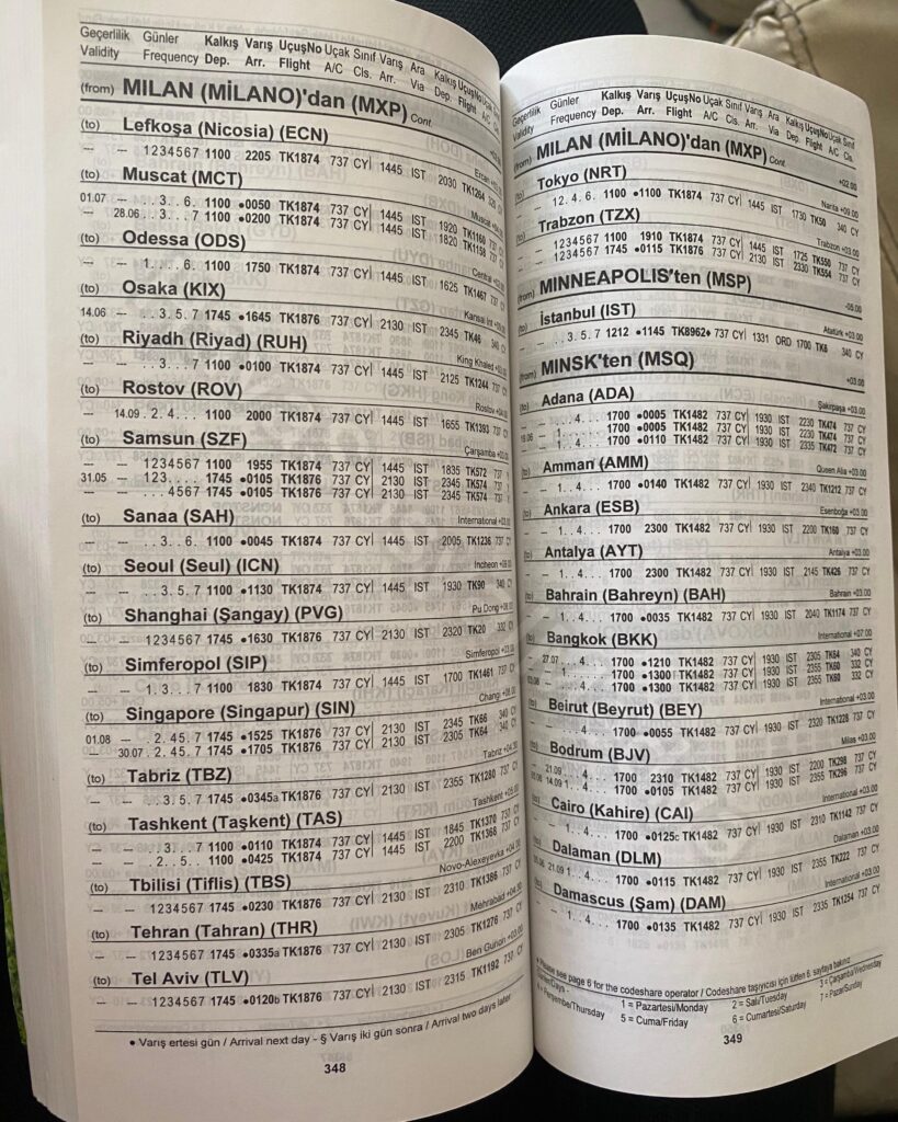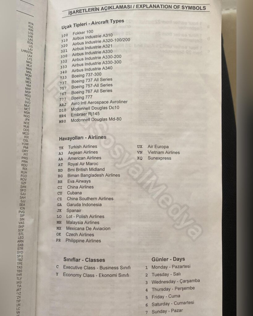 O yıllarda henüz mobil uygulamalar veya anlık güncellemeler bu kadar yaygın olmadığı için yolcular, hangi gün hangi şehre uçuş olduğunu ve saatlerini bu tür basılı tarifelerden takip ediyordu.