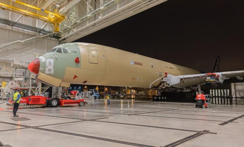 Airbus, A350F programı kapsamında üretilen ve motorları henüz takılmamış olmasına rağmen üretim sürecinde önemli bir aşamanın tamamlandığını gösteren ilk uçağı hangardan çıkardığını duyurdu. Şirket, özellikle Spirit AeroSystems kaynaklı gecikmelerin ardından tedarik zincirinde kısmi bir toparlanma sağlandığını belirtirken, MSN700 numaralı test uçağının birleştirme çalışmalarının gövde parçalarının Toulouse’a ulaşmasının ardından ağustos ayında başladığını belirtti.