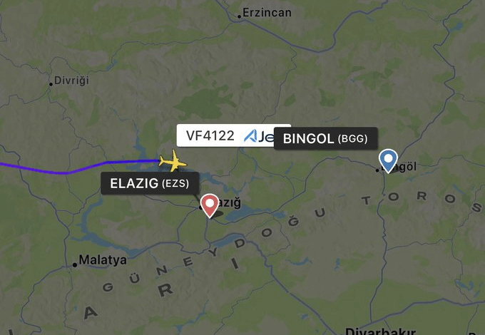 Uçak emniyetli bir şekilde Elazığ Havalimanı’na divert ederken yolcular ise karayolu ile Bingöl’e ulaştırıldı.