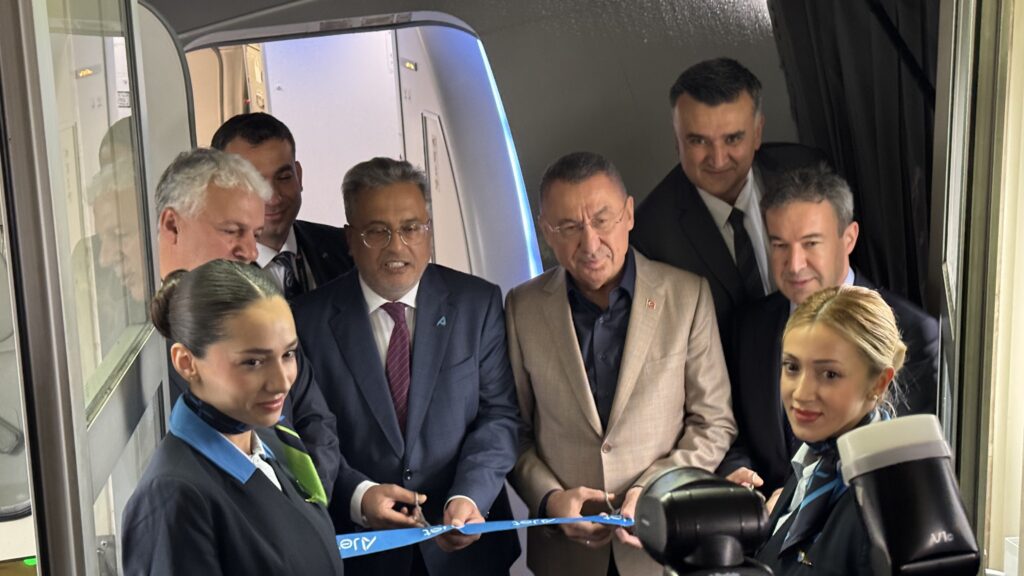 Uçuş öncesinde Esenboğa Havalimanı’nda düzenlenen törende TBMM Dışişleri Komisyonu Başkanı Doç. Dr. Fuat Oktay, Sivil Havacılık Genel Müdürü Prof.Dr.Kemal Yüksek, ODTÜ Rektörü Prof. Dr. Ahmet Yozgatlıgil, Türk Hava Yolları Yönetim Kurulu ve İcra Komitesi Başkanı Prof. Dr. Ahmet Bolat, AJet Genel Müdürü Kerem Sarp, AJet CCO’su Cemal Kaya, TCI Genel Müdürü Mujdat U. ve birçok protokol üyesi yer aldı.