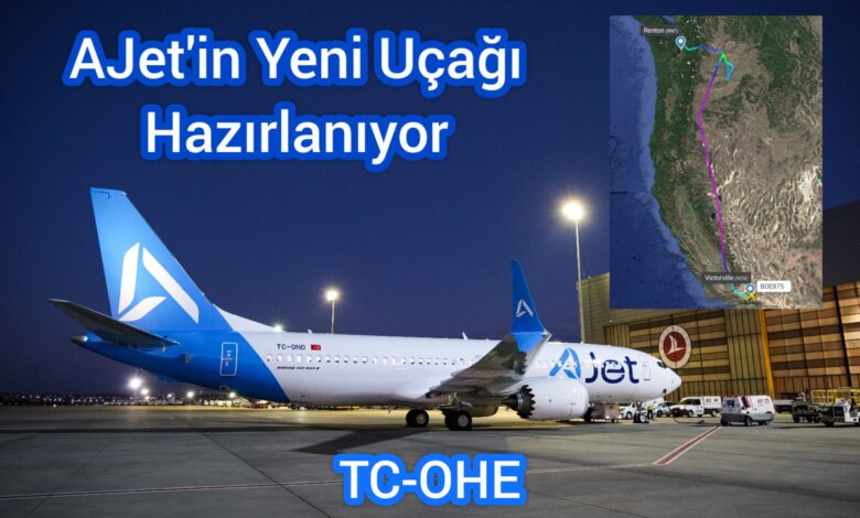 AJet’in, Renton tesislerinde üretilen yeni Boeing 737 MAX 8 tipi uçağı dün ilk uçuşunu gerçekleştirdi. 65234 MSN numarası ve 9317 Line numarasına sahip olan TC-OHE tescilli MAX 8 tipi uçak, 3 saat 24 dakikalık ilk uçuşu olan Renton – Victorville seferini dün icra etti.