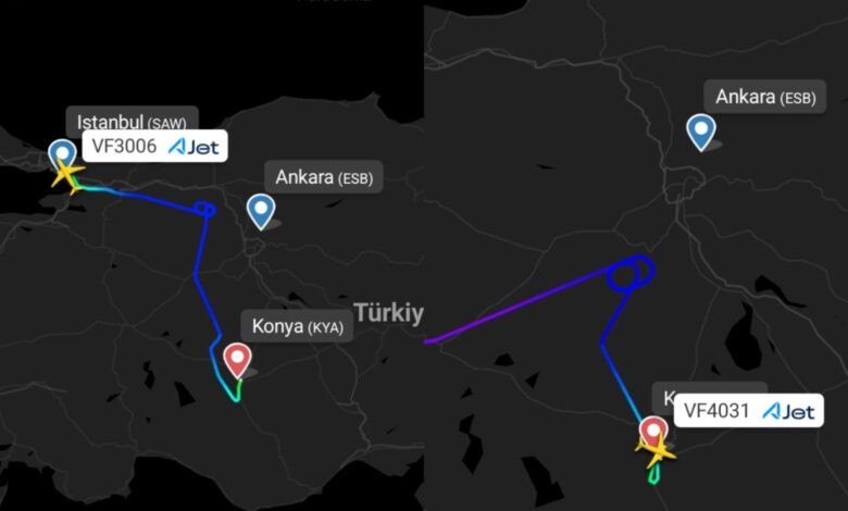 Bu sırada Ankara Esenboğa’ya inişi planlanan bazı uçakların Konya ve Ankara’ya divert ettiği ve yakıt ikmalinin ardınan uçakların yeniden Ankara’ya dönüş yapacağı öğrenildi.
