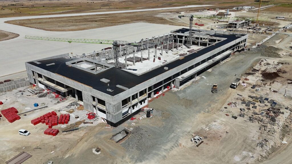 “300 metreye 120 metrelik bir apron bitirdik. Aynı şekilde uçakların taksi yolu dediğimiz, terminale yaklaşan yolları, 265 metrelik taksi yolunu beraberinde bitirmiş olduk. Burada yılda 2 milyon yolcuya hizmet edecek 20 bin metrekarelik bir terminal alanında çalışmalarımız devam ediyor. Bunun yıl sonuna kadar çatısını kapatacağız ve çalışmalarımızı kış şartlarında da içerisinde devam ettireceğiz. 32 bin metrekare burada bir kapalı alan elde edeceğiz.”