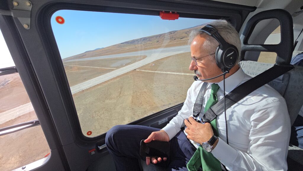 Ulaştırma ve Altyapı Bakanı Abdulkadir Uraloğlu, yapımı devam eden Yozgat Havalimanı’ndaki çalışmaları yerinde inceleyerek yetkililerden bilgi aldı. Bakan Uraloğlu, helikopterle yaptığı hava denetimi sırasında da proje sahasını detaylı biçimde gözlemledi.