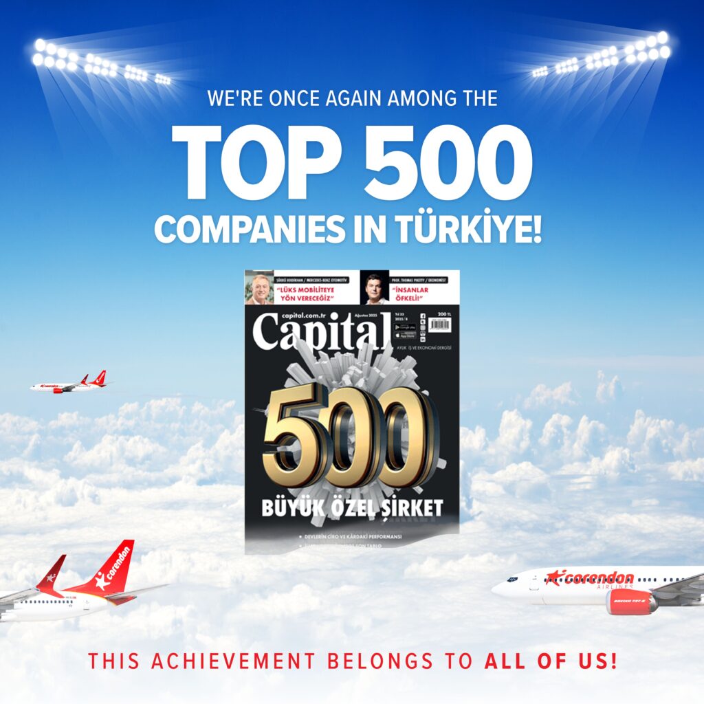 Corendon Airlines Yönetim Kurulu Başkanı Yıldıray Karaer, elde edilen başarıyla ilgili şunları söyledi: “‘Tatil Havayolu’ vizyonuyla 2005 yılında çıktığımız yolculukta, sektöre değer katan pek çok ilke imza attık. Geride bıraktığımız 20 yılda milyonlarca yolcuyu güvenli, konforlu ve ilham veren seyahat deneyimleriyle buluşturduk. 2025 yılında kuruluşumuzun 20. yılını kutlarken, Capital 500 listesinde 203. sıradan 196. sıraya yükselmiş olmak, sürdürülebilir büyüme stratejimizin ve operasyonel gücümüzün bir göstergesi oldu. Türkiye’nin en büyük özel şirketlerinin yer aldığı bu prestijli listede ilerlemeyi, yalnızca finansal bir başarı değil; aynı zamanda ülke ekonomisine, turizme ve istihdama sağladığımız katkının da bir teyidi olarak görüyoruz. Bugün 35 uçaklık filomuzla yılda 10 milyon yolcuya hizmet veriyor, faaliyet gösterdiğimiz tüm pazarlarda istikrarlı büyümemizi sürdürüyoruz. Yeni nesil, yakıt verimliliği yüksek uçaklarla filomuzu güçlendirmeye, uçuş ağımızı çeşitlendirmeye ve müşteri deneyimine yatırım yapmaya devam ediyoruz. Bu başarıda en büyük paya sahip olan ve özveriyle çalışan tüm ekip arkadaşlarıma ve bizi tercih eden değerli misafirlerimize teşekkür ediyorum.”