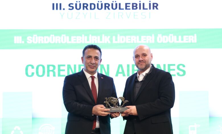 Sürdürülebilirlik Liderleri Ödülleri, Turkuvaz Medya Merkezi’nde gerçekleştirilen törenle sahiplerini buldu. İlklerin havayolu şirketi Corendon Airlines, sürdürülebilir ürün ve uygulamalarıyla ödül kazanan kurumlar arasında yer aldı. Çevre, Şehircilik ve İklim Değişikliği Bakanlığı ile InBusiness Dergisi editörlerinden oluşan jüri tarafından yapılan değerlendirme sonucunda; Corendon Airlines’ın Antalya Havalimanı’nda sürdürülebilir havacılık yakıtı (SAF) kullanımına başlaması, bu uygulamayı ölçeklendirme hedefi ve IATA Fly Net Zero 2050 taahhüdünü desteklemesi, ödüle gerekçe olarak gösterildi.