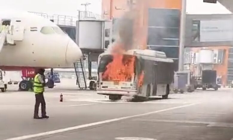 Delhi Indira Gandhi Uluslararası Havalimanı’nın (IGI) Terminal 3 bölgesinde, Air India SATS’a ait bir yer hizmetleri otobüsü salı sabahı alev aldı.