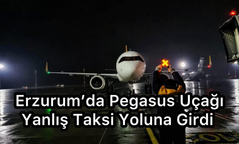 Erzurum’da Pegasus Uçağı Yanlış Taksi Yoluna Girdi