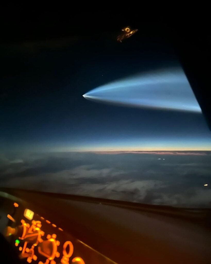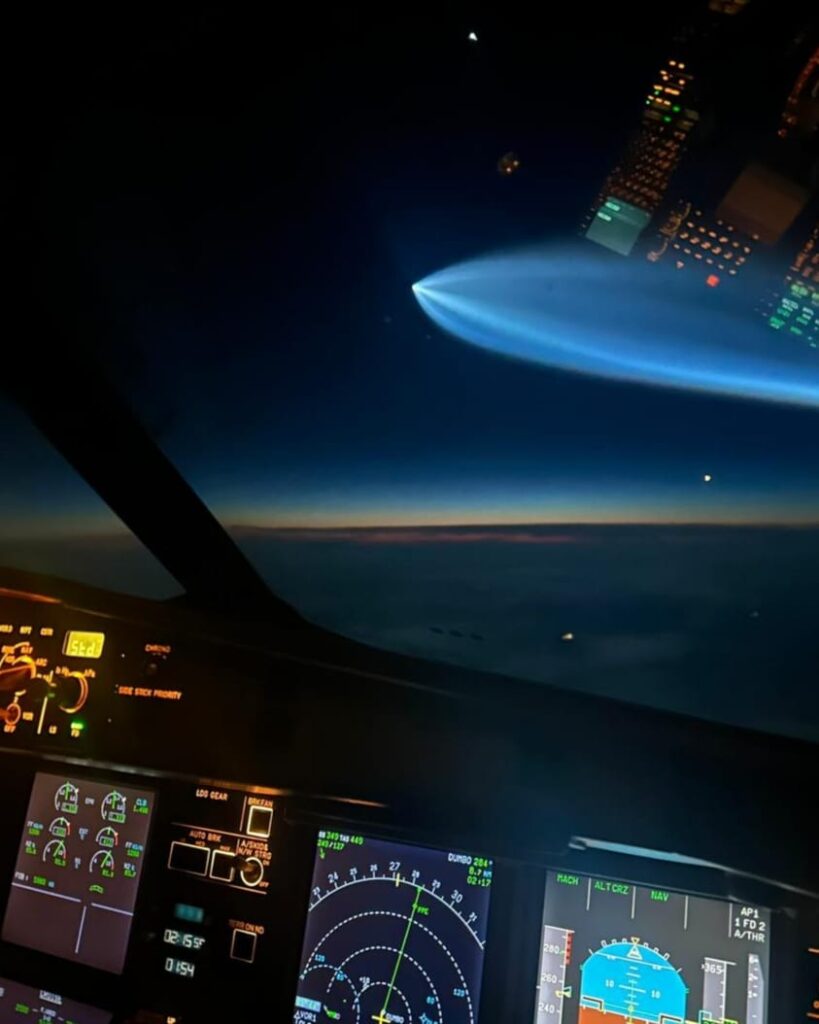 Şubat 2025’te gerçekleştirilen Falcon 9 fırlatması, bir Airbus uçağının kokpitinden kaydedildi. Pilotlar tarafından çekilen fotoğraflarda, SpaceX roketinin gökyüzünü aydınlattığı anlar net şekilde görülebiliyor.