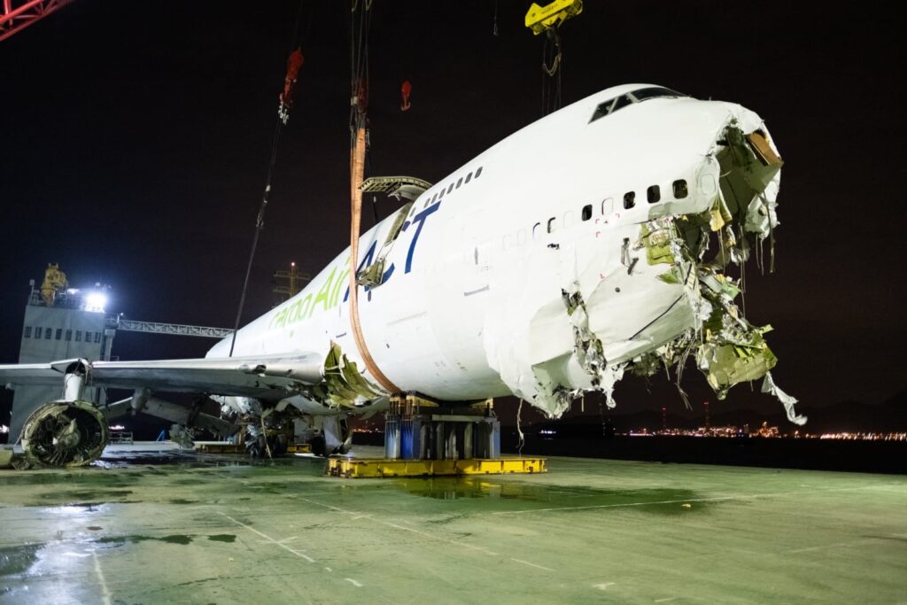 Geçtiğimiz hafta iki güvenlik personelinin hayatını kaybettiği Boeing 747-400 tipi kargo uçağı kazasının ardından Hong Kong Uluslararası Havalimanı’nda başlatılan kurtarma çalışmaları son aşamaya geldi. Pistten çıkarak güvenlik aracına çarpan ve aracı denize sürükleyen uçağın enkazı, geniş çaplı bir operasyonla sudan çıkarıldı.