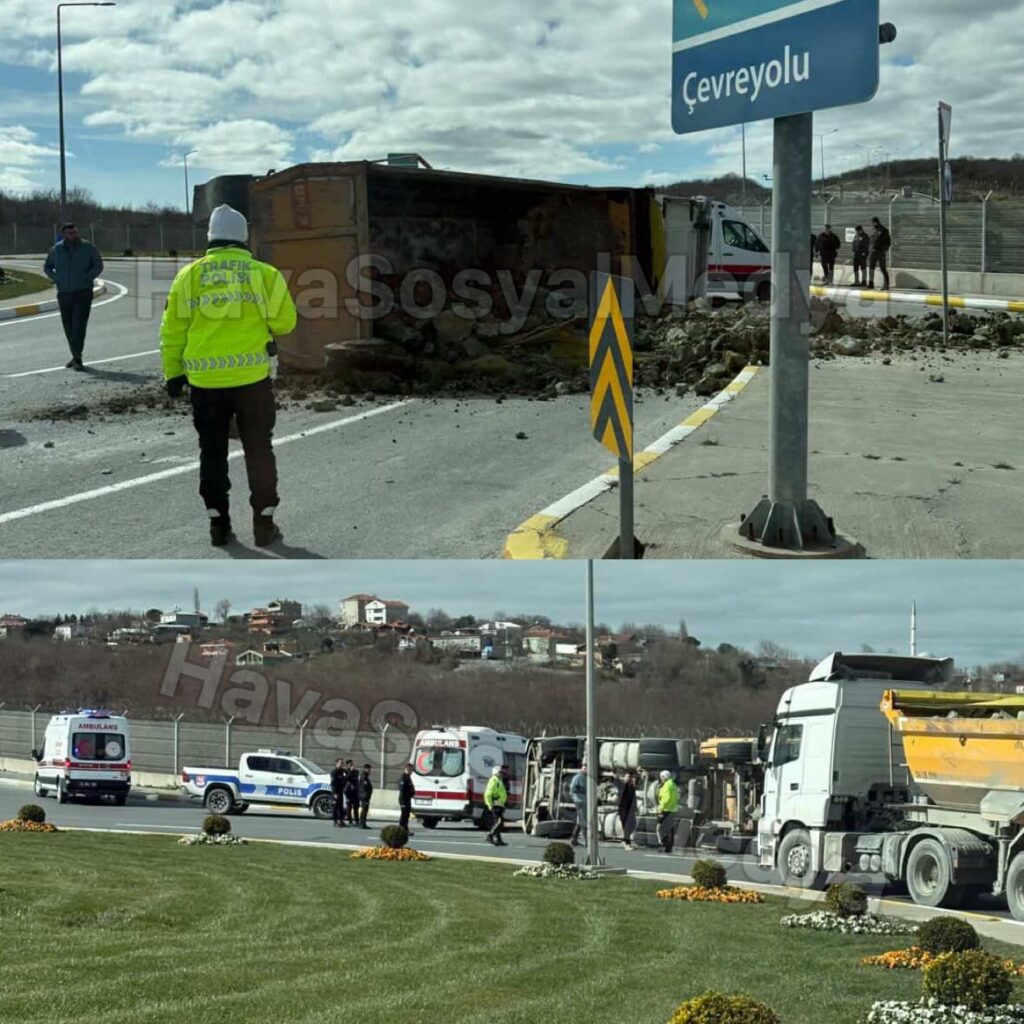 İstanbul Havalimanı Devlet Konukevi Kavşağında Kamyon Devrildi