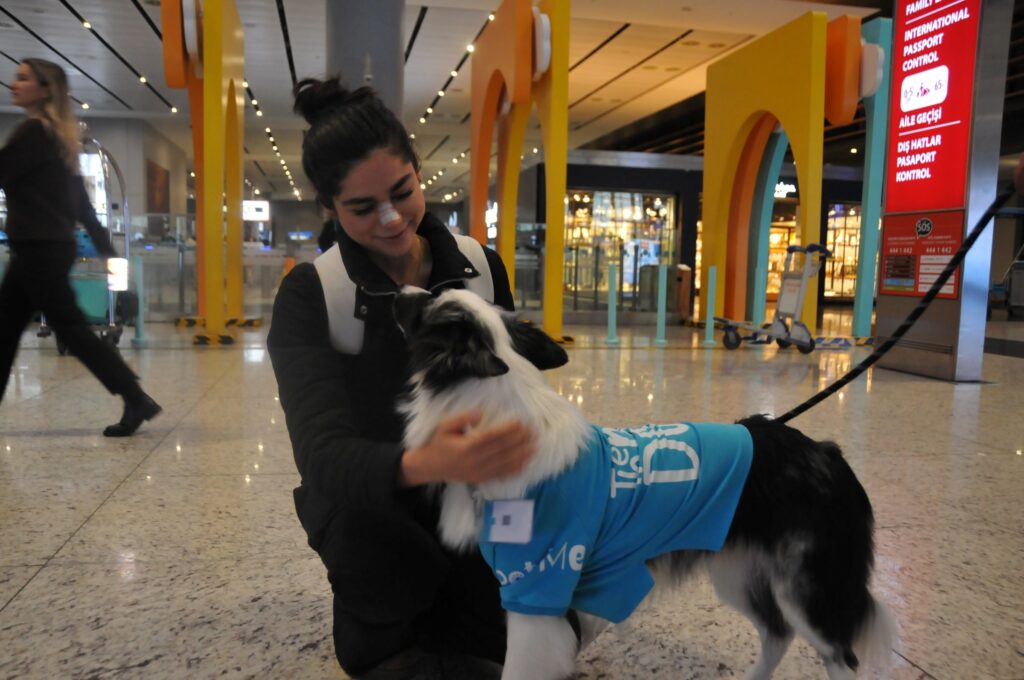 İstanbul Havalimanında görev yapan uçuş öncesi, endişe, stres yaşayan yolcuların korkularını yenmesini sağlayan terapi köpekleri ise çocukların büyük ilgisini çekti. Uçuş öncesi stres, endişe ve korku yaşayan yolcular, Havalimanı İşletmecisi İGA tarafından uygulamaya konulan terapi köpeklerini severek rahatlıyor.