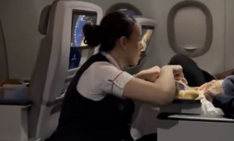 EgyptAir’in Kahire uçuşunda tek başına seyahat eden görme engelli bir yolcu, iftar hazırlığı sırasında kabin ekibinden destek aldı.