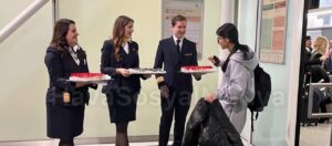 İlk seferin yolcuları, Münih Havalimanı’nda yer hizmetleri ekipleri tarafından lokum ikramıyla uğurlandı.