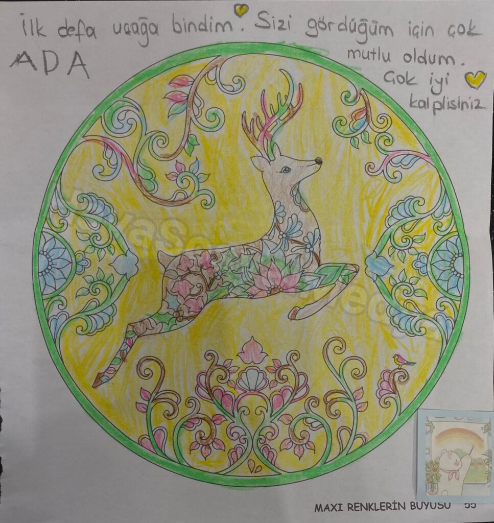 ➡️ Heyecanlarını resimlerle anlatan minik ikizler, çizimlerinin üzerine küçük teşekkür notları da ekleyerek uçuş ekibine duydukları mutluluğu paylaştı.