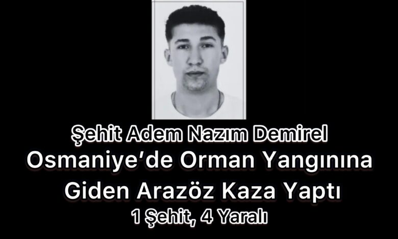Osmaniye’nin Hasanbeyli ilçesinde meydana gelen orman yangınına müdahale için yola çıkan arazöz, seyir hâlindeyken kaza yaptı. Kazada Orman Genel Müdürlüğü personeli Adem Nazım Demirel şehit oldu.