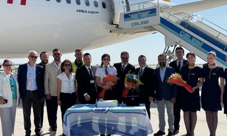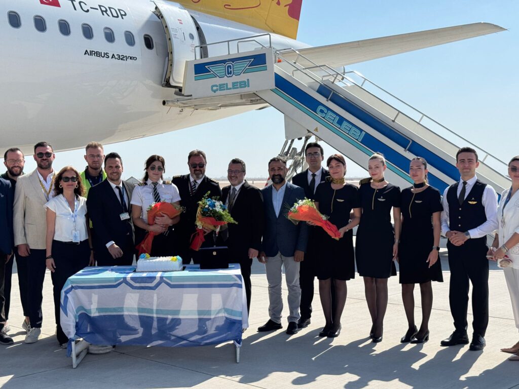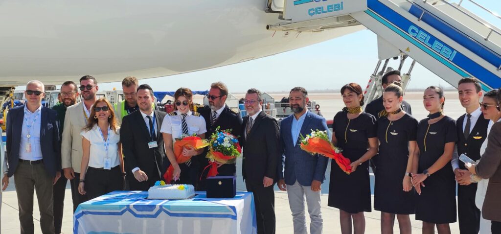 Uçak, Hatay Havalimanı’na inişinin ardından Türk bayrakları ile karşılandı ve Çelebi yer hizmetleri tarafından özel tören yapıldı.
