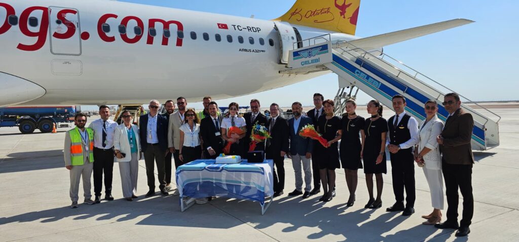 Törene Pegasus ve Çelebi’den çok sayıda çalışan katıldı. Törende hatıra fotoğrafları ve pasta kesimi gerçekleştirildi. Ayrıca uçuş ekibine çiçekler takdim edildi.
