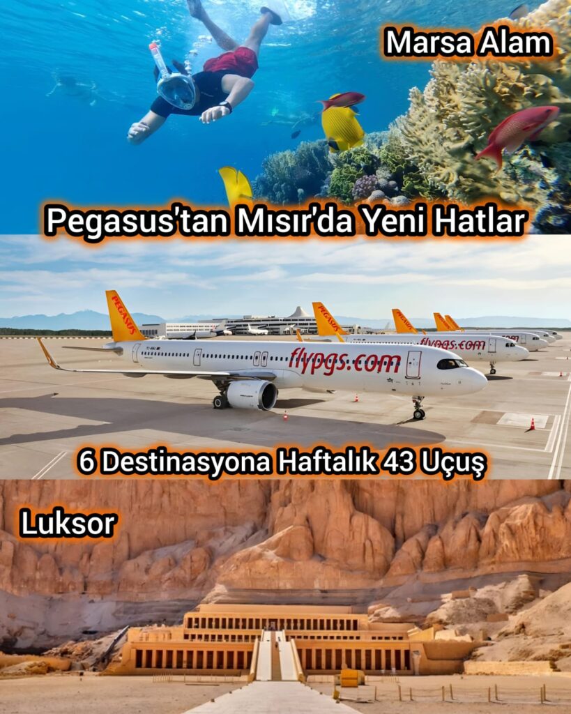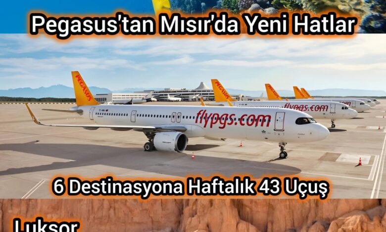 * Türkiye’nin en büyük düşük maliyetli hava yolu şirketi Pegasus Hava Yolları, kış sezonunda Mısır’daki ağını genişletiyor. Hava yolu şirketi Kahire, İskenderiye, Şarm El Şeyh ve Hurghada uçuşlarının yanı sıra Mısır’ın önemli turistik bölgesi Marsa Alam ile Nil kıyısındaki önemli antik Mısır şehri Luksor’a tarifeli uçuşlara başlayacak.