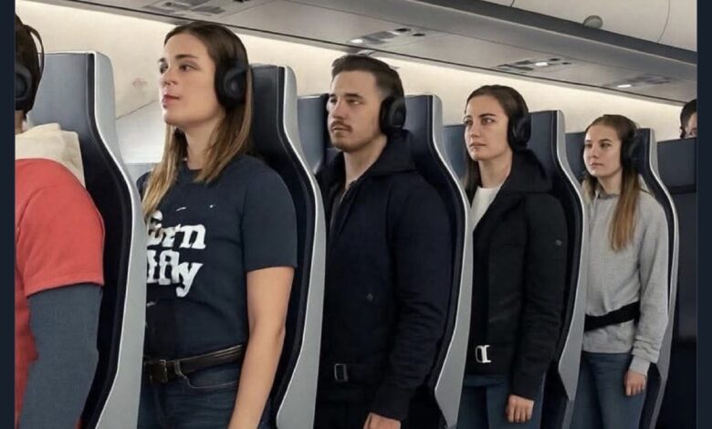 Avrupa’nın düşük maliyetli havayollarından Ryanair, sosyal medyada yine mizah dozu yüksek bir paylaşımla gündeme geldi. X’te bir kullanıcı, yolcuların ayakta, kulaklıklarla seyahat ettiği bir kabin tasarımı görselini paylaşarak, “Ryanair ile seyahatin geleceği. Ayak numaranız 44-45’ten büyükse bilet fiyatına yüzde 15 ek ücret yansıtılır” notunu düştü.