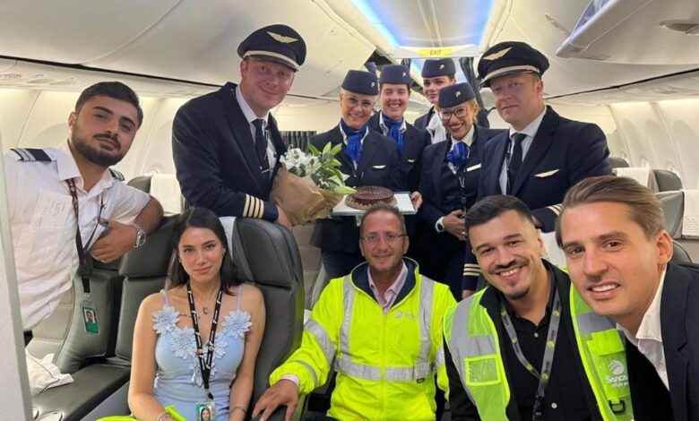 İlk uçuş sonrası, Sancak Catering ekipleri, uçuş ekibi hoşgeldin pastası ile karşıladı ve ayrıca hatıra fotoğrafları çektirildi.