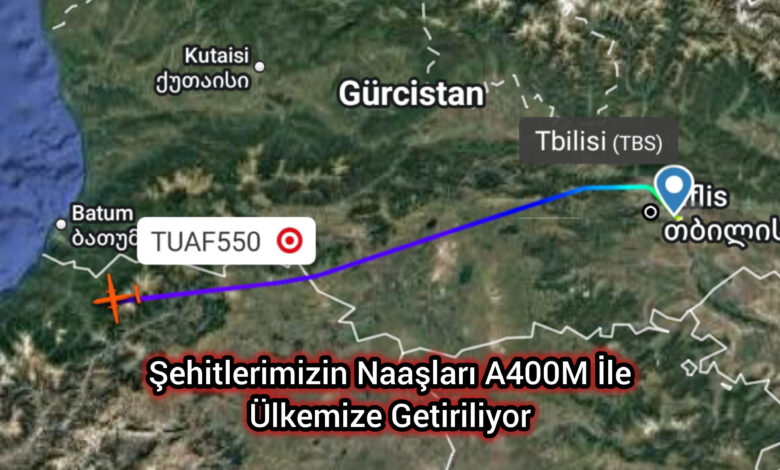 Gürcistan’da yaşanan C-130 kazası sonrası şehit olan askerlerimizin naaşları A400M tipi uçak ile Tiflis’ten kalkış yaparak an itibariyle ülkemiz sınırları içerisinde getiriliyor.