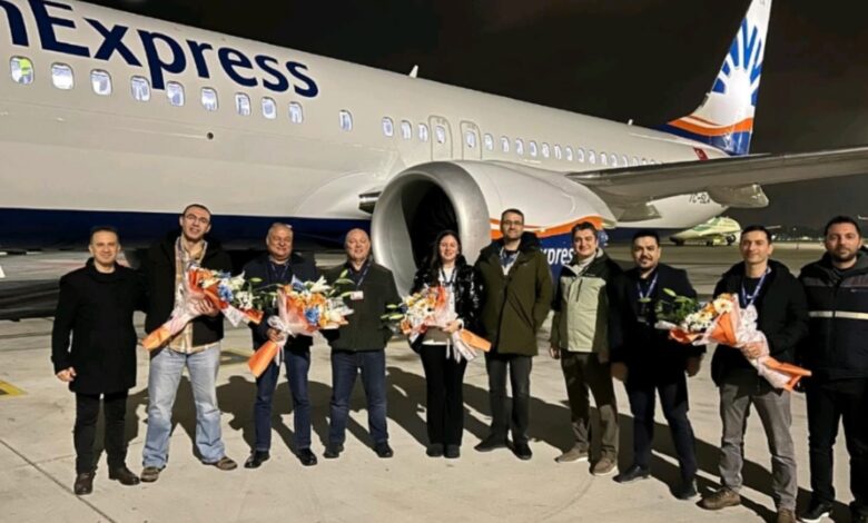 Uçaklar, dün gece saatlerinde Antalya Havalimanı’na iniş yaparken; uçuş ekibi çiçekler ile karşılandı.