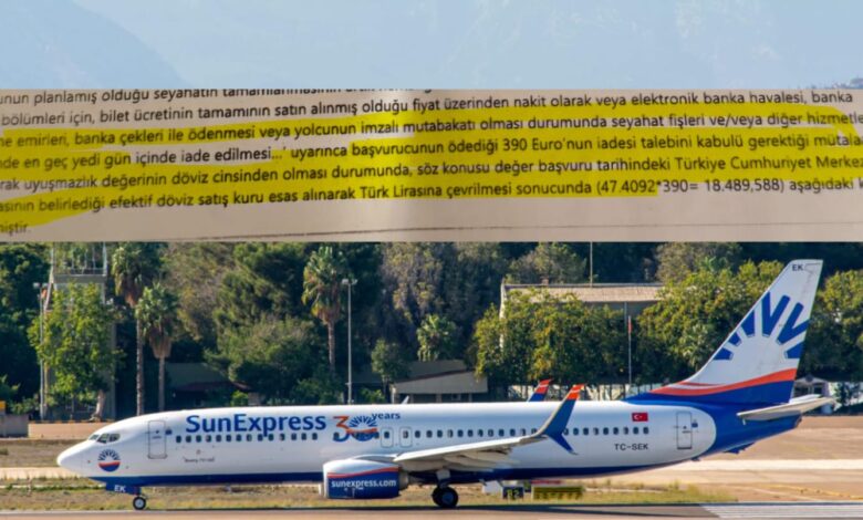 Karara SunExpress’in itiraz hakkı bulunuyor ancak itiraz edilmediği takdirde, tutar yolcuya ödenecek.