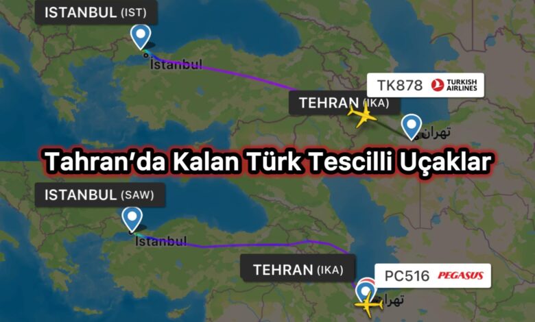Pegasus’un #PC516 Sabiha Gökçen–Tahran seferini icra eden TC-RBR tescilli Airbus A321neo ile Türk Hava Yolları’nın #TK878 İstanbul–Tahran seferini gerçekleştiren TC-JZG tescilli Boeing 737-800 tipi uçağı, İran hava sahasının kapatılması nedeniyle Tahran’da kaldı. Her iki uçağın dönüş seferleri mevcut durumda iptal edildi.