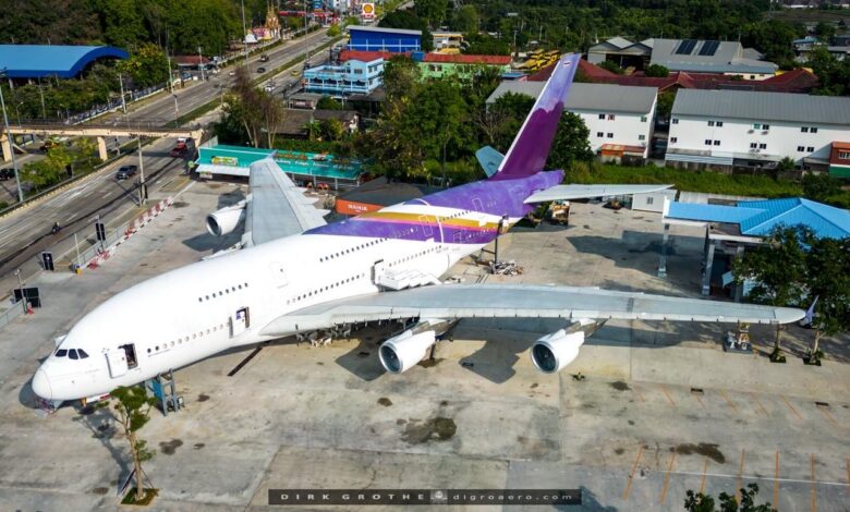 Tayland’ın Rayong eyaletinde, daha önce Thai Airways filosunda yer alan bir Airbus A380 uçağı farklı bir amaçla yeniden kullanıma kazandırıldı. HS-TUE tescilli ve MSN 125 üretim numaralı uçak, yapılan dönüşümün ardından restoran ve açık pazar alanı olarak hizmet vermeye başladı.