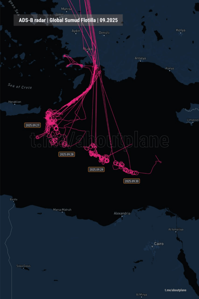* Akdeniz semalarında birkaç gündür Türk Hava Kuvvetleri’ne ait insansız hava araçlarının faaliyetleri dikkat çekiyor. Gözlemlere göre bu uçuşlar, Gazze’ye doğru ilerleyen Global Sumud Filosunun hareketlerini takip etmeye yönelik.
