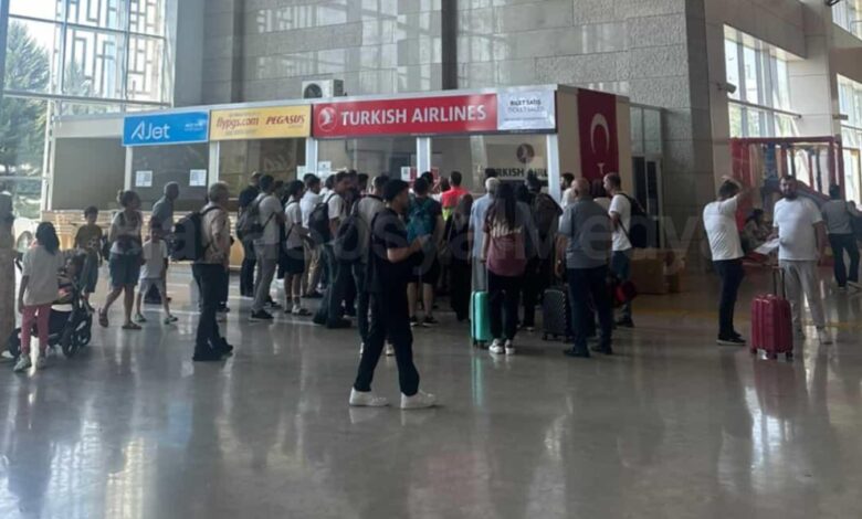 Yolcular, uçaktan indirilerek terminale alınırken; uçakta inceleme gerçekleştirildi ve uçağın seferi iptal edildi.