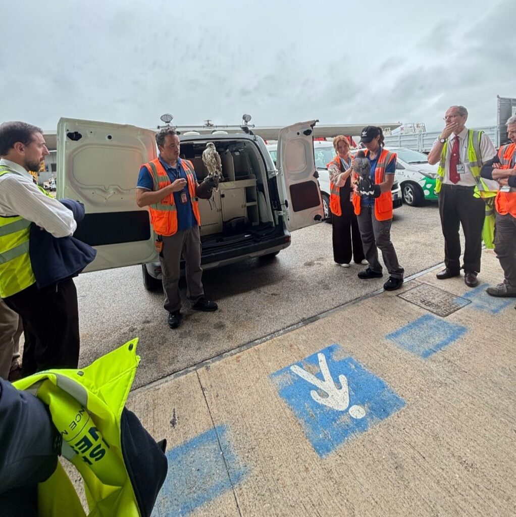 Kuş çarpışmalarını önlemek için uygulanan yöntemler ele alındı. Doğal yaşamı korumak adına şahinlerin kuşları uzaklaştırmakta nasıl kullanıldığı örneklerle aktarıldı.