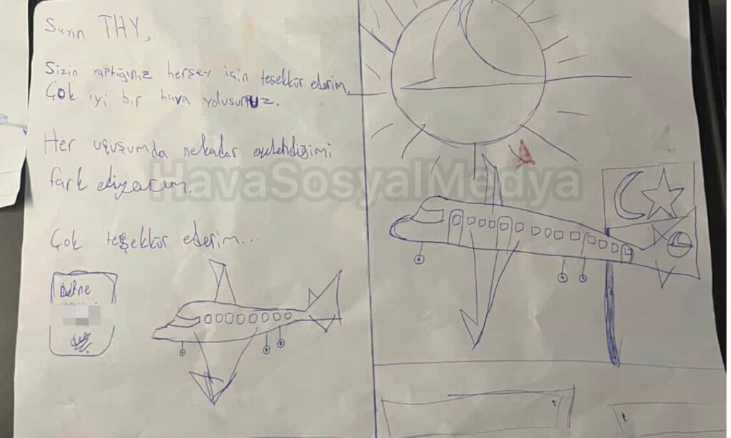Türk Hava Yolları’nın 7 Aralık’ta #TK1730 Berlin–İstanbul seferini gerçekleştiren TC-LPF tescilli Airbus A321neo tipi uçağında minik yolcular kabin ekibine sürpriz çizimler hazırladı. Uçuş kabin ekibi için oldukça özel bir anıya dönüştü.