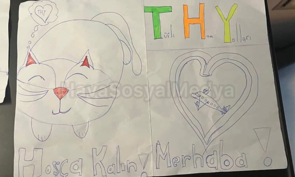 THY’nin BER–İST Uçuşunda Minik Yolculardan Kabin Ekibine Sürpriz Çizimler