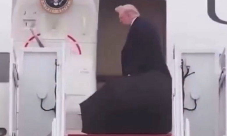 Trump Uçağa Binerken Şemsiyesini Kapıda Bıraktı
