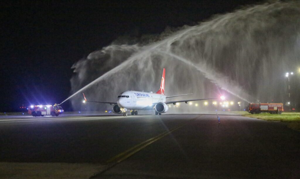 • B737-8 MAX tipi uçak, havalimanında su takı ile karşılanırken törene Türkiye’nin Nairobi Büyükelçisi Subutay Yüksel başta olmak üzere çok sayıda davetli katıldı.