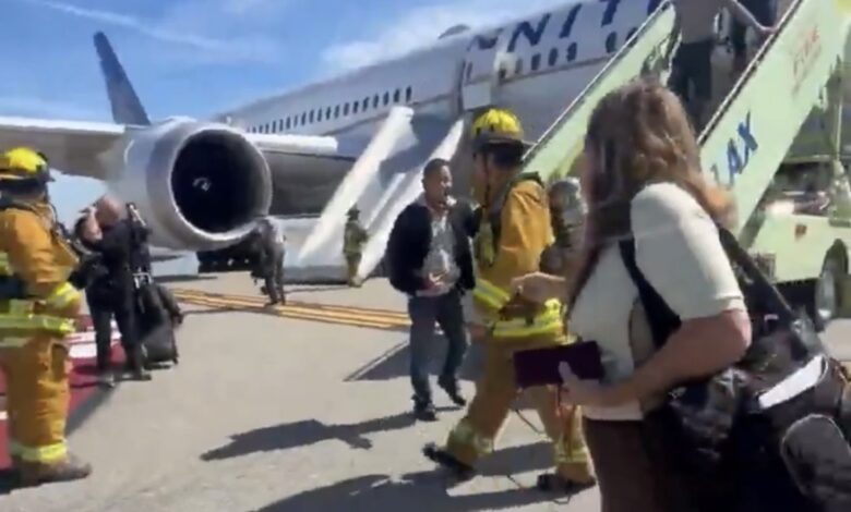 United Airlines Uçağından Tahliye Anları | Tahliye Anında Kabin Bagajlarıyla Çıkanlar